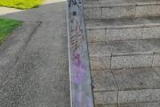 Z bytového domu v bratislavskej Petržalke nám vlastníci nahlásili požiadavku na odstránenie "odkazov" zanechaných neznámym "umelcom" na nerezovom zábradlí, dlažbe a dvierkach montážnych otvorov.